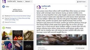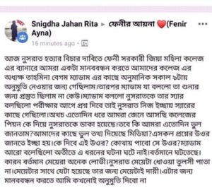 ফেনির আয়না নামক গ্রুপে স্নিগ্ধার ফেসবুক স্ট্যাটাস
