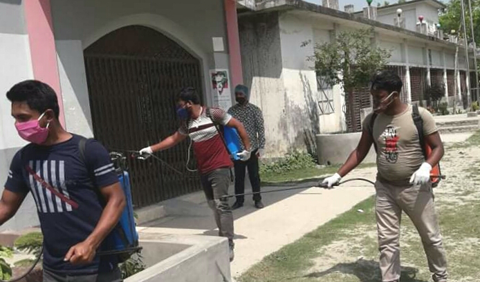 কিশোরগঞ্জে করোনা ভাইরাস রোধে জীবাণু নাশক ঔষধ স্প্রে করে ছাত্রদল