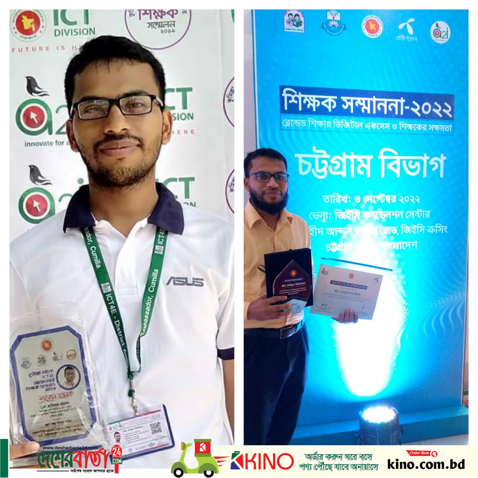 ২০২৪ এর শ্রেষ্ঠ আইসিটি শিক্ষক হিসেবে মনোনীত হয়েছেন এবং বিদ্যালয়ের নাম উজ্জ্বল করার পাশাপাশি নিজেকে একজন শিক্ষক হিসেবেই দেখতে ও ভাবতে চান তিনি। দেশের বার্তার এক জিজ্ঞাসায় এই স্বল্পভাষী শিক্ষক মো: আতিকুর রহমান বলেন,"অর্জনের চেয়ে আমার কাছে আমার কাজই অনেক বড়। আমি আমার কাজেই আপাতত মনোনিবেশ করতে চাই।"