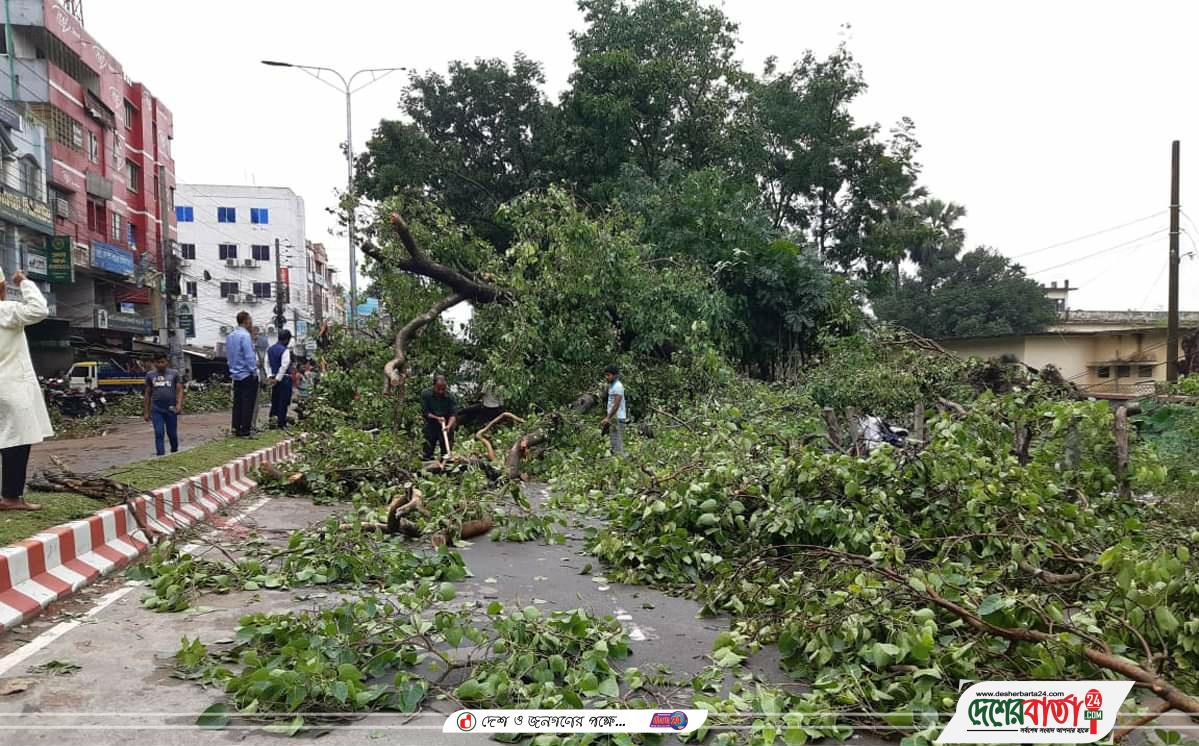 বিভিন্ন এলাকায় ঘুরে দেখা যায়, ঝড়ো হাওয়ায় বিভিন্ন কাচা-পাকা বাড়িঘর, বিভিন্ন ফসলের ক্ষেত দুমড়ে-মুচড়ে যায়। এতে শত শত হেক্টর জমির ফসল নষ্ট হয়। হাজারও ঘরের টিনের চালা উড়ে যায়। বড় বড় গাছপালা উপড়ে পড়েছে। রাস্তাগুলোতে বড়-ছোট গাছপালা ভেঙ্গে উপচে পরে রাস্তা বন্ধ হয়ে যায়। পৌর শহরের সরকারি বালক উচ্চ বিদ্যালয়ের শতবর্ষী পাকুড় গাছটি ভেঙ্গে পরেছে পাশ্বের মূল সড়কের উপরে। এতে করে রাস্তার এক পাশ দিয়ে যান চলাচল বন্ধ হয়ে পরে। পরে শ্রমিক লাগিয়ে গাছটি অপসারন করা হলে যানচলাচল স্বাভাবিক হয়। কিন্তু গাছের ডালপালা বিদ্যু’তের তারের উপরে পরলে সেটি মারাত্মকভাবে ক্ষতিগ্রস্থ হয়। অপরদিকে শহরের কোট চত্বরে পাকুড় গাছ, সরকারি বালিকা উচ্চ বিদ্যালয়, পিটিআই, সার্কিট হাউজ, ডায়াবেটিকস হাসপাতালের সামনের বড় বড় গাছ উপড়ে পড়েছে। বিভিন্ন গ্রাম-গঞ্জের অবস্থা আরও খারাপ। সবদিকে গাছ, গাছের ডালপালা ভেঙ্গে গিয়ে রাস্তা ঘাট প্রায় বন্ধ হয়ে গেছে। আর্ট গ্যালারীতেও বড় বড় বেশ কিছু গাছ ভেঙ্গে পরেছে।