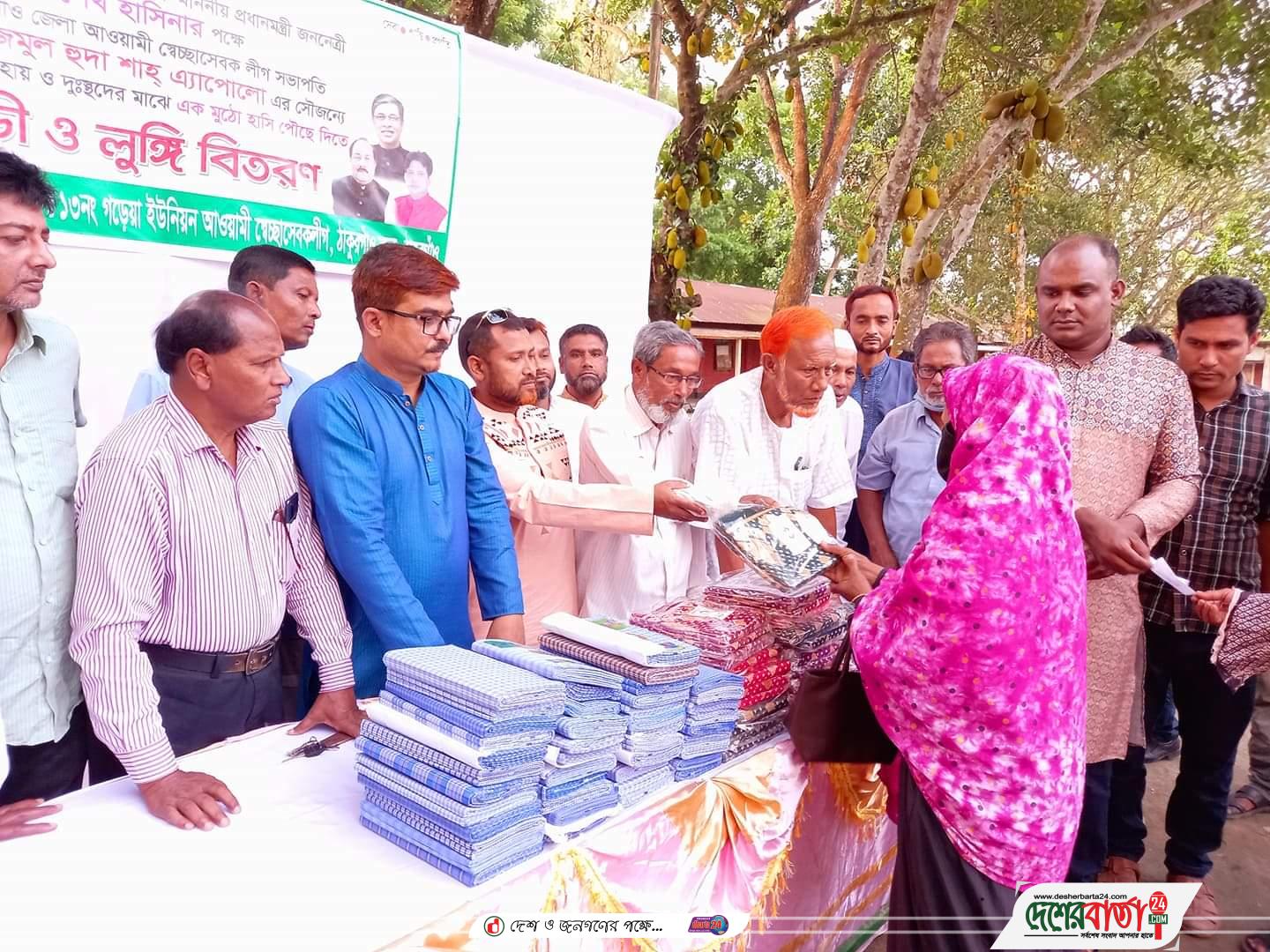 পবিত্র ঈদ-উল-ফিতর উপলক্ষে ঠাকুরগাঁও জেলা আওয়ামী স্বেচ্ছাসেবক লীগের শাড়ি ও লুঙ্গি বিতরণ